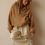 Ponořte se do absolutního pohodlí s tímto ultra měkkým fleecovým svetrem ze sherpy, který je příjemný jako teplé objetí. Jeho květinový vzor ve stylu boho dodává originální nádech, zatímco mírně oversized střih zajišťuje ležérní a moderní vzhled.